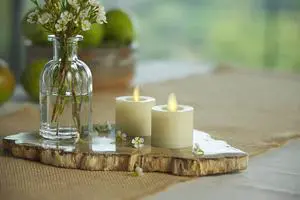 luminara realistic artificial flame pillar candle wrapped with real birch bark - moving flame led battery operated lights - unscented - remote ready - remote sold separately - 4.0" x 7.0"