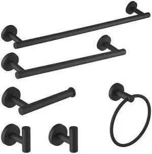 BWE 6-Piece Modern Bath Hardware Set with Towel Ring Toilet Paper Holder Towel Hook and Towel Bar Wall Mount in Matte Black # A-91020-6-B # 1010747374