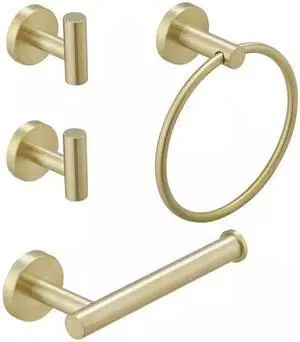 BWE 4-Piece Bath Hardware Set with Robe Hooks, Towel Ring, Toilet Paper Holder Modern in Brushed Gold # A-91062-BG-R # 1010755825