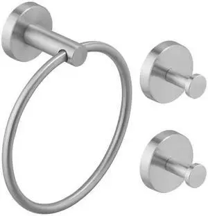 BWE 3-Piece Bath Hardware Set Towel Ring and 2-Piece Towel Hooks and Mounting Hardware Wall Mount Modern in Brushed Nickel # A-91063-N # 1010747391