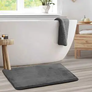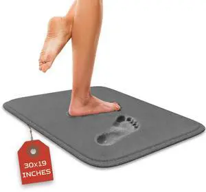 Memory Foam Bath Mat 20 x 32, Water Absorbent Shower Mat, Thick Non Slip Bath Rugs with PVC Backing, Ultra Soft for Bathroom Floor & Tub, Grey