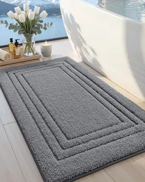 Bath Rugs for Bathroom 32x20, Ultra Soft and Water Absorbent Bath Mats, Non Slip Plush Shower Rugs, Microfiber Thick Matts for Bathroom Floor/Tub, Machine Washable, Pure Gray