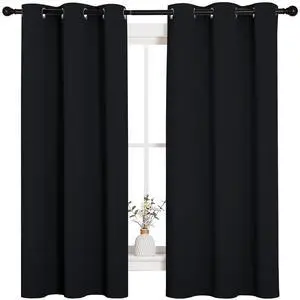 Pitch Black Solid Thermal Insulated Grommet Blackout Curtains/Drapes for Bedroom Window (2 Panels, 42 inches Wide by 63 inches Long, Black)