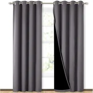 Grey Full Shade Curtain Panels, Pair of Energy Smart & Noise Blocking Out Blackout Drapes for Dining Room Window, Thermal Insulated Guest Room Lined Window Dressing(Gray, 52 x 84 inch)