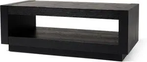 Maven Lane Artemis Large 2 Tier Contemporary Rectangle Wooden Center Coffee Table with Shelf Storage for Living Room in Refined Black Finish