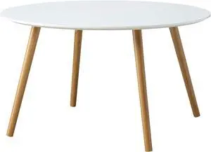 Convenience Concepts Oslo Round Coffee Table Mid-Century Modern Minimalist Design, Glossy White Top, Solid Wood Legs, Easy 2-Step Assembly, White