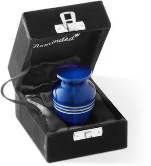 Reminded Small Cremation Memorial Urn for Human Ashes, Blue with Silver Striped Miniature Keepsake Urn with Velvet Case