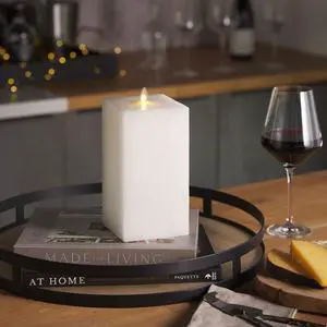 Luminara Flameless Square Moving Flame Indoor LED Pillar Candle, 4"x8.5" - White