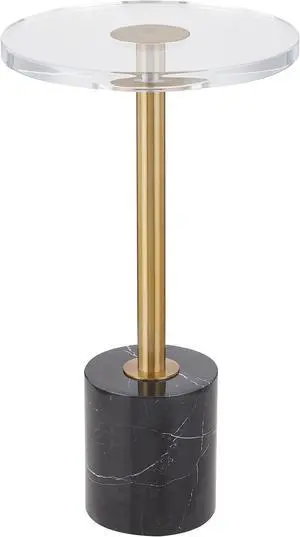 LIKENOW Furniture Acrylic Side Table,Clear Small Round End Table for Living Room,Bedroom,Office | Modern Nightstand with Marble Base,Gold Post,Clear Top for Drink,Food,Snack,Assembly(Black)