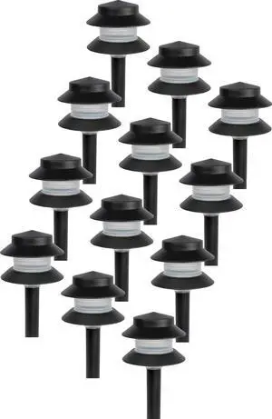 GreenLighting 35 Lumen Modern 2-Tier Low Voltage Path Light - Outdoor 2.5 Watt Landscape Light (12 Pack, Black)