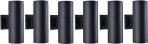 mirrea Modern Outdoor Porch Light Patio Light in 2 Lights with Matte Black Aluminum Cylinder and Tempered Glass Cover Waterproof Wall Sconce 6 Pack