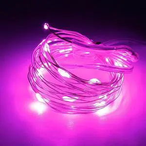 10ft Micro Dot Silver Wire LED String Lights Battery Operated Pink