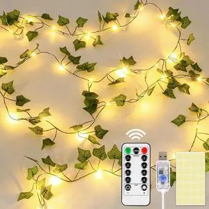 200 LED Vine with Light Plug in 6.5ft x 6.5ft Ivy Fairy Curtain Lights with Remote Leaf Fairy Lights for Wall Bedroom Dorm Wedding Party Indoor Decor(Warm White)