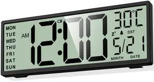 Digital Wall Clock Battery Operated with Big Digits LCD Screen Display, Large Display Timer with Temperature Date Week Auto DST, Alarm Clock for Classroom, Livingroom, Office