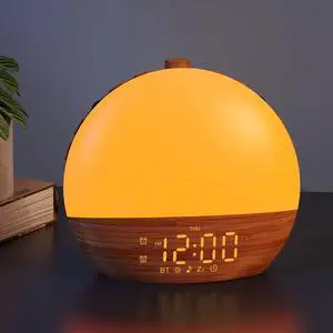 Sunrise Alarm Clock with Sound Machine - Wake Up Light, Wood Grain, Bluetooth, Dual Digital Alarm Clocks for Bedrooms, Adjustable Brightness, 30 Sleep Sounds, White Noise Machine for Baby & Adults