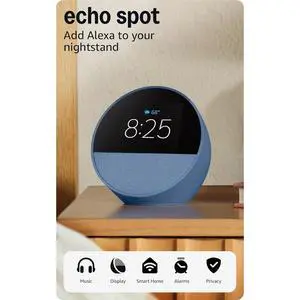 Echo Spot (newest model), Great for nightstands, offices and kitchens, Smart alarm clock with Alexa, Ocean Blue