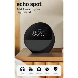 Bobobigo Echo Spot (newest model), Great for nightstands, offices and kitchens, Smart alarm clock with Alexa+ Early Access, Black