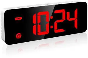 Radio Digital Clock with USB Phone Charger 7.3'' LED Curved-Screen Display with Dimmer 2 Alarm Setting Radio Clock for Bedrooms Red