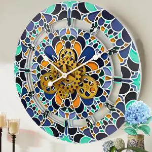 The Gears Clock 24 inches Round Italy Collection Wall Clock with Moving Gears Tramonti