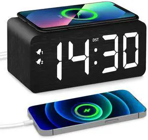Digital Alarm Clock, with 5.5" Large LED Time Display, Adjustable Alarm Volume, 6 Level Brightness, Alarm Settings, USB Charger, Temperature Detect, Snooze, Clocks for Bedroom, Bedside, Desk, Black- Type: Digital