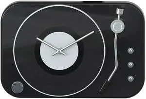 Vintage Retro Metal Record Player Wall Clock - Black