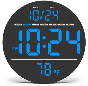 Digital Wall Clock with Date, Indoor Temperature, Auto-DST, Battery-Operated Digital Clock, 8 Inch Small Decorative Wall Clock for Bedroom, Living Room, Home, Kitchen, Office, Modern, Electric, Simple- Type: Clear LCD Display