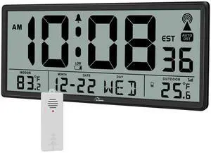 10.5'' Digital Large Alarm Clock with 8-in-1 RGB Colors, Date, Month, Temperature LED, Auto DST, Modern for Desk, Wall, Living Room, Bedroom, Birthday Xmas Gift (Black, 10.5 inches)- Type: Digital