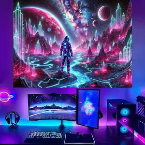 Glow in The Dark Celestial Astronaut Theme Tapestry 2D Flat - UV Reactive Neon Wall Art for Bedroom, Game Room, Dorm, Man Cave Decor, Prebuilt Pc Decor (40x30in)