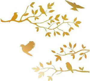 GOLD(CHROME MIRROR) 20" x 59" Burnish Birds & Blossoms