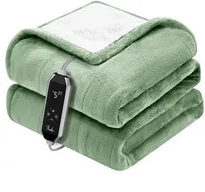 Reaks Heated Blanket Throw, 50×60 Inches, Fast Heating Blanket 10 Heat & 9 Timer Settings, Electric Blanket Soft Flannel Sherpa, Automatic Power Off Function, ETL & FCC, Machine Washable, Green