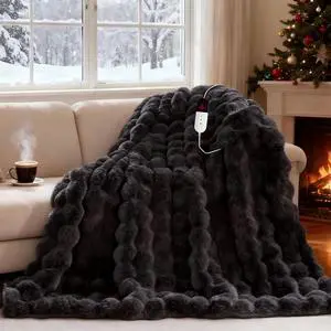 AEPINBH Electric Blanket, Soft Faux Rabbit Fur Bubble Heated Blanket with Dual Control 6 Heating Levels & 4 Hours Auto-Off, Machine Washable, Fast Heating (Dark Gray, 50"X60")