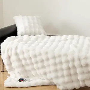 VELLUBAM Faux Fur Heated Blanket Throw White - Luxury Fluffy Rabbit Bubble Electric Blanket with 6 Heating Levels, 4 Time Settings, Ideal Gift for Women, Machine Washable (50"x60")