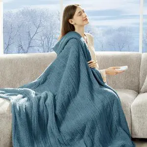 Heated Blanket Throw 50"X60" - Soft Double Sided Sherpa Electric Blanket Throw with 5 Heatings Levels & 4 hrs Auto Shut Off, Overheat Protection & ETL Certified for Women(Blue)