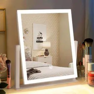 Lighted Makeup Mirror, Hollywood Vanity Mirror with Lights, Three Color Lighting Modes, Smart Touch Control, Rotation, Desk Makeup Mirror for Desks Bedroom Dorm Dressing Room (9.48"x11.81")