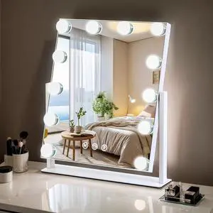 Vanity Mirror with Lights, 13'' x 11'' Lighted Makeup Mirror for Desk, Hollywood Mirror with 12 Dimmable Bulbs, 3 Color Modes, Smart Touch Control, 360°Rotation, Gifts for Mothers Day, Girls