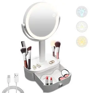 Makeup Mirror Rechargeable Travel Vanity Mirror with Lights Removable Desk Mirror Adjustable Angle Light up Makeup Mirror 3 Levels of Adjustable Brightness Led Mirror Makeup CM110