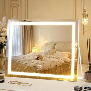 27.5"x 21.6" Vanity Mirror Makeup Mirror with Lights,10X Large Hollywood Lighted Vanity Mirror with 22 Dimmable LED Bulbs,3 Color Modes,Touch Control for Bedroom,Tabletop or Wall-Mounted