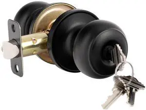 700SQ Privacy Door Knob with Key, Interior/Exterior Door Knob for Bedroom, Bathroom, Front Door, Left or Right Doorknob with Lock (Black, 1-Pack)