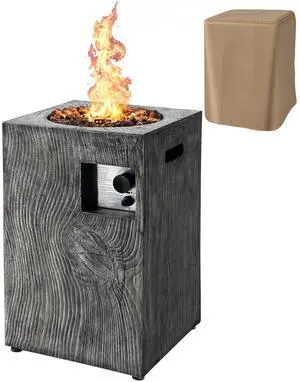 Costway 16'' Square Outdoor Propane Fire Pit w/Lava Rocks Waterproof Cover 30,000 BTU Gray