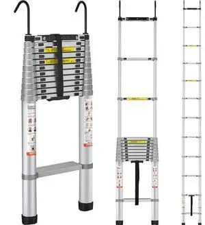 Telescoping Ladders 12.5 FT Aluminum Lsdder - One-Button Retraction Collapsible Extension Ladder for Home,RV,Attic,Lasts 330 LBS with Swivel Feet and Non-Slip Cushion