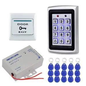 HFeng Door Access Control System Kit 125KHz RFID Keypad Metal Case + DC12V 3A Power Supply Controller + Door Exit Button + 10pcs Keyfobs (Without Lock)