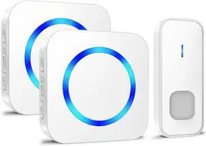 Wireless Doorbell by SadoTech Waterproof Door Bells & Chimes Wireless Kit, 1000-ft Range,52 Door Bell Chimes, 4 Volume Levels with LED, Wireless Doorbells w/ 2 Receiver & 2 Button, Crosspoint, White