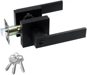 Entry Door Lock Set, Square Door Lever for Bedroom, Passage Door Privacy Locking Interior/Exterior Entry Door Knob/Heavy Duty