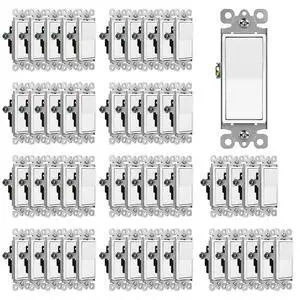 (50 Pack) Decorator Wall Light Switch, Single Pole Switch, 15A 120/277V, 3-Year Warranty, White