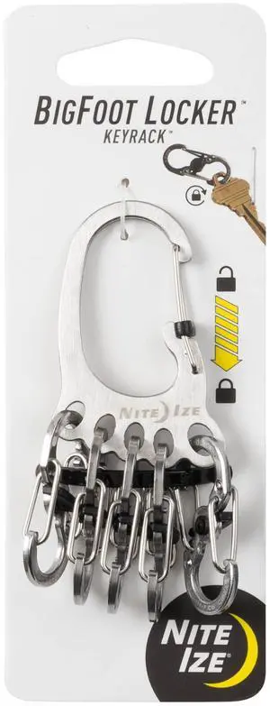 11-R6 Bigfoot Locker KeyRack, Carabiner Chain with 5 Stainless Steel Locking S-Biner Toes to Hold Keys Separately + Securely, 1, Silver
