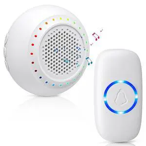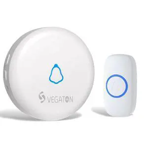 VEGATON Wireless Doorbell kits with IP55 Waterproof Level, 500ft Range, 5 Volume Levels with 32 Doorbell Chimes Color LED Flash, White
