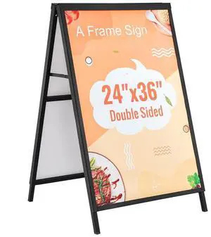 VEVOR A Frame Sidewalk Sign, 24x36 Inch Heavy Duty Slide-in Signboard Holder, Double-Sided Folding Sandwich Board Signs, Steel Pavement Sign Poster for Outdoor Business Street Advertising (Frame only)