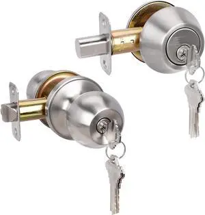 HOSOM Door Knob with Lock and Key, 2 Pack Keyed Entry Door Knob, Exterior and Interior Door Lock for Front Door Commercial and Residential Area, Entry Door Handle for Bedroom and Bathroom