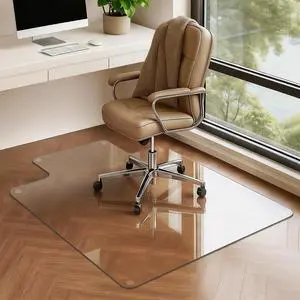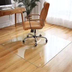 VASUHOME Premium Tempered Glass Chair Mat, 46 x 55 Inch Large Office Floor Mat for Carpet or Hardwood Floors, 1/5" Thick with 12 Anti-Slip Pads