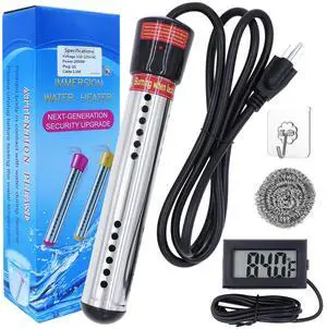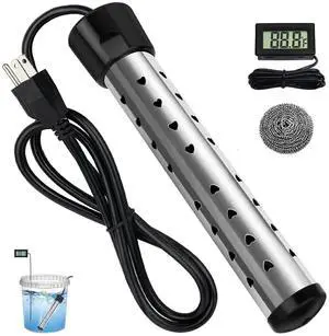 1500W Immersion Water Heater with Digital Thermometer, Portable Bucket Heater with Auto Shut-Off & 304 Stainless Steel Guard, Rapid Heating for Inflatable Pool, Bathtub & Home Use (1)